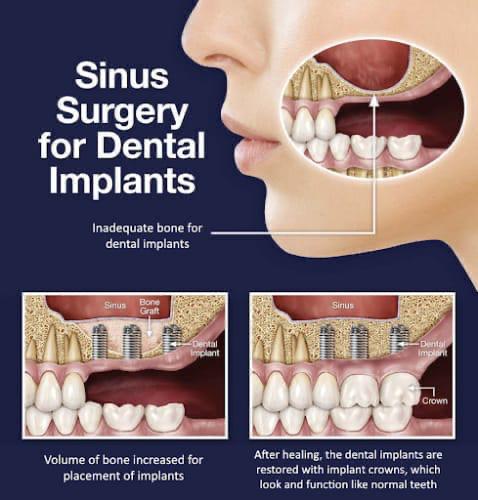 As with any surgical procedure, there are risks involved, including infection, sinus membrane perforation, and complications related to the bone graft material. However, these risks are rare when the procedure is performed by a skilled and experienced oral surgeon.